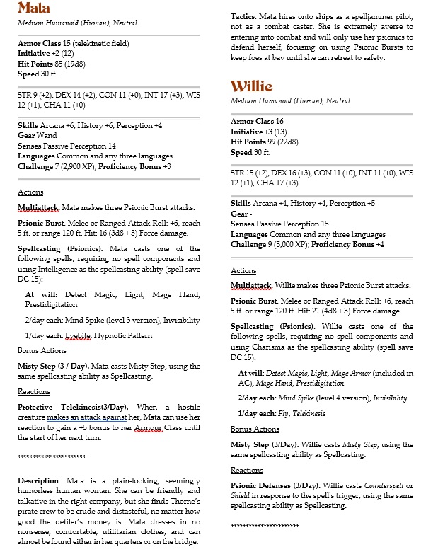 I’m trying to stat out a Psion NPC for a 5e campaign, but I’m still learning this setting and this conversion of it. Does anyone have a CR 7-10-ish Psion NPC stat block that I could tweak or learn from?